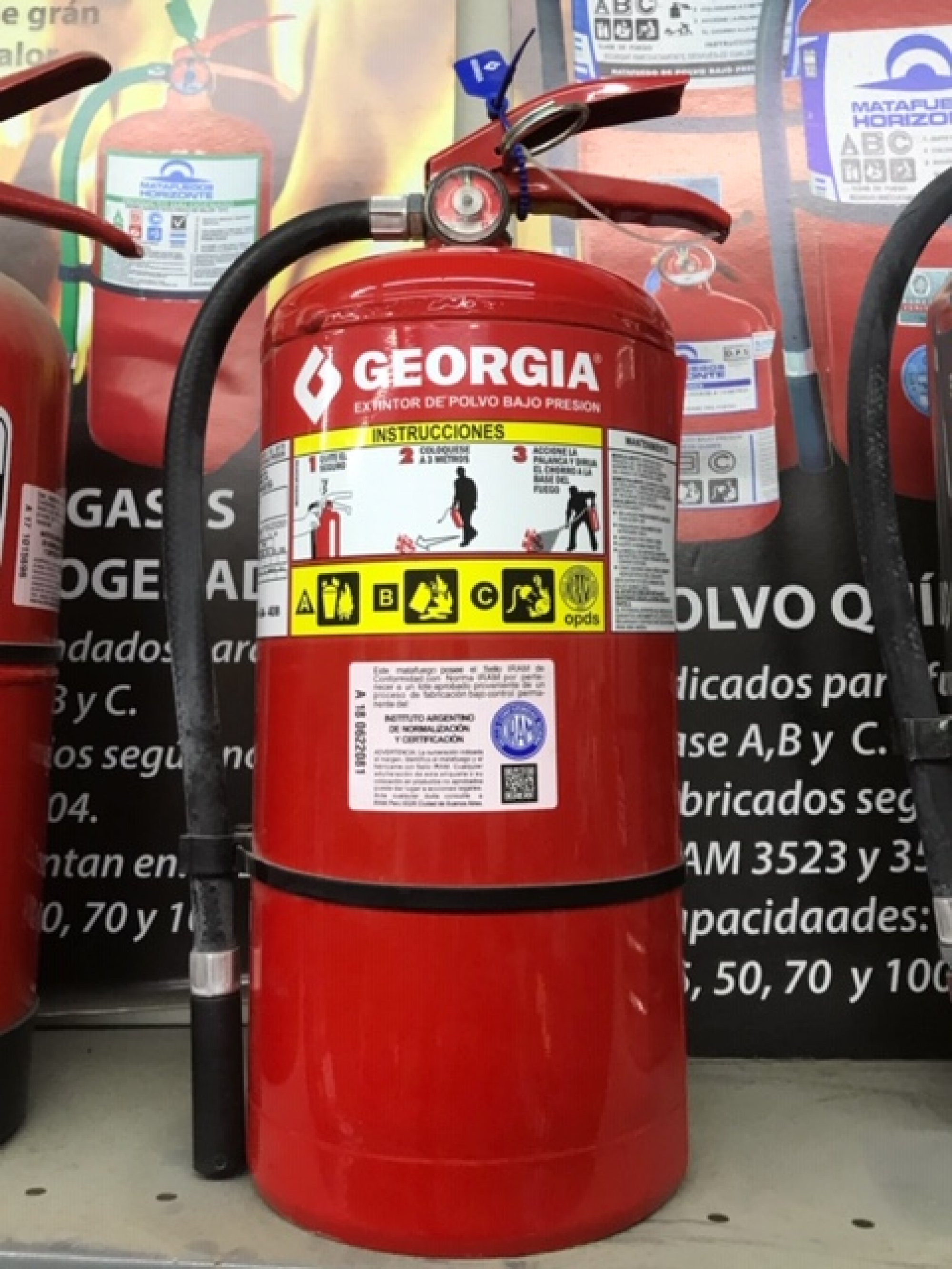 Matafuego de polvo ABC de 5kg. Sello IRAM -DPS. Marca Georgia. Incluye soporte y envío en Rosario. Precio sin IVA